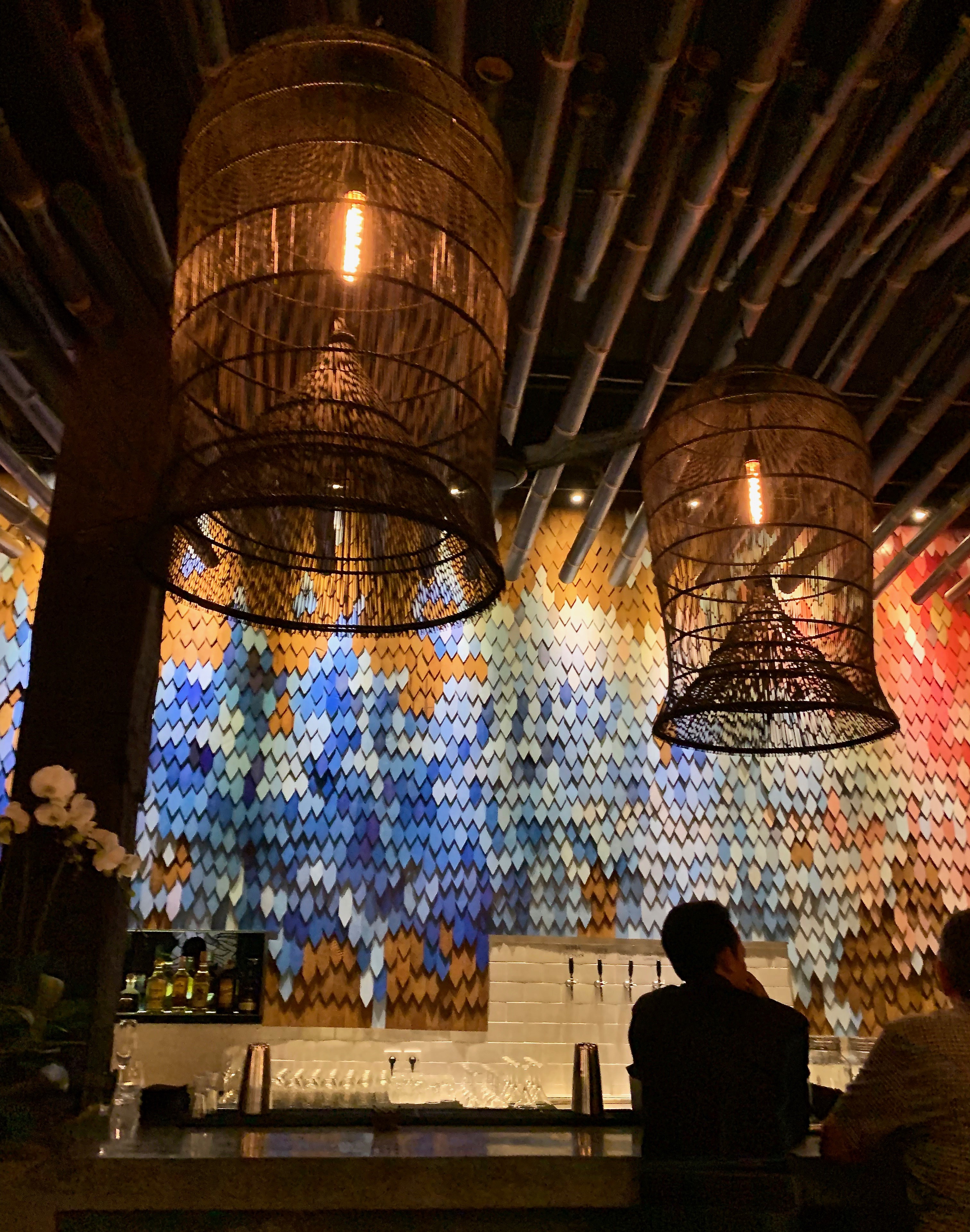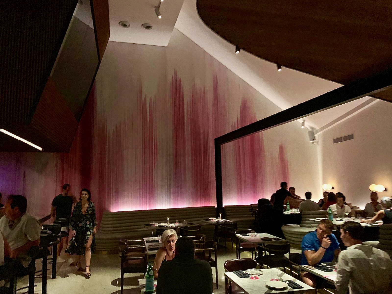 The best is yet to come. We came across a restaurant called Sister-fields http://www.sisterfields.com we just had a light dinner of fish and polenta chips and Tony had a poke bowl it was great. The restaurant design was really cool. But the hi-light of a restaurants in Seminyak is when we found that sister fields had a really sexy big sister called Bikini http://www.ulookhotinbikini.com. now doesn’t that just make you laugh their web address. From the moment we walked in the door the experience had started. The restaurant fit out with its pink painted dripping walls and super-lush leather banquet seating and vertical garden at one end.