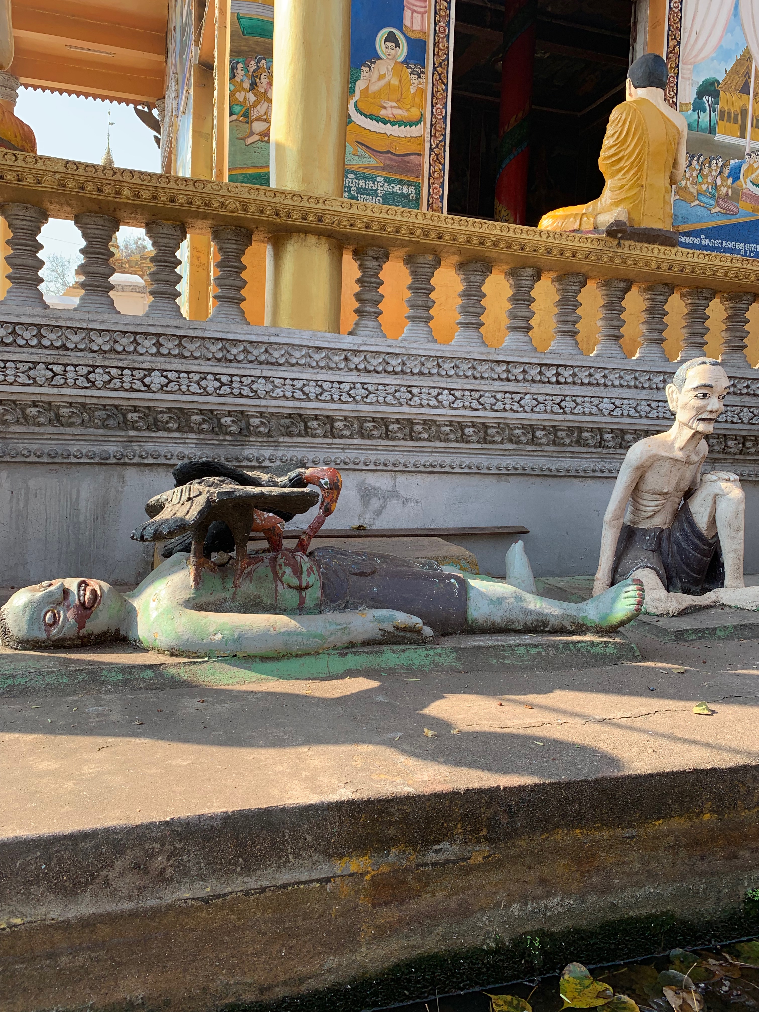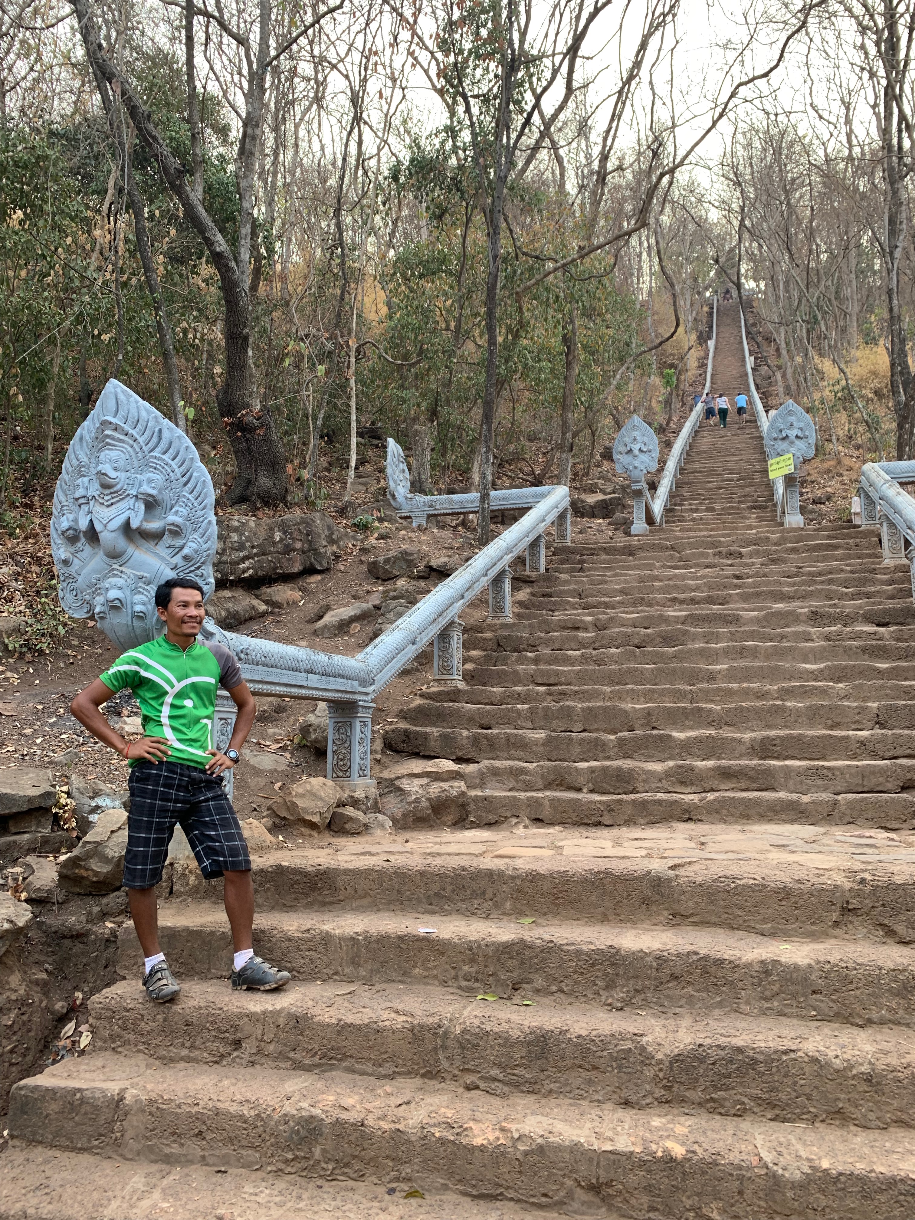 Up early again which you totally get as the days are so very hot. To ride dirt tracks, yeah…… We are heading towards Battambang. But first stop is a temple or stupa on top of the hill very golden and some very weird statues of gore which I think it represents in Buddhism that you can go to not a pleasant place if you have been a bad person. Karma I am thinking. We are riding 55 kms on the road or black top as Mr Lot would call it. So sweaty. Todays snacks where some local sticky rice. I really can’t believe we are eating when we just had breakfast 2 hours earlier. But it was tasty. We arrive in Battambang to a really nice hotel have an hour or so of rest then back on the bike for an afternoon ride of 25kms out to a temple a really old 11th century one that you have to climb 300 steps up to. Yeah so excited. Riding is fine but 300 huge steps up not so much but you do it. To take the photo look at the view and decend. Day done.